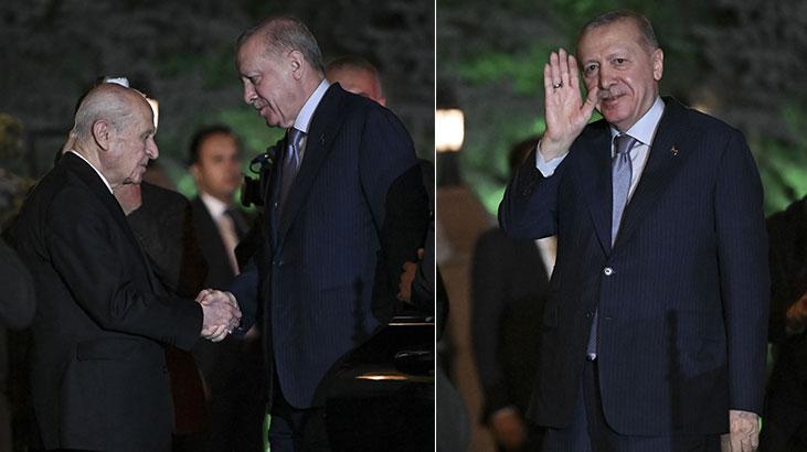 MHP Genel Başkanı Bahçeli, görüşme sonrası Erdoğan’ı konutun kapısından uğurladı.